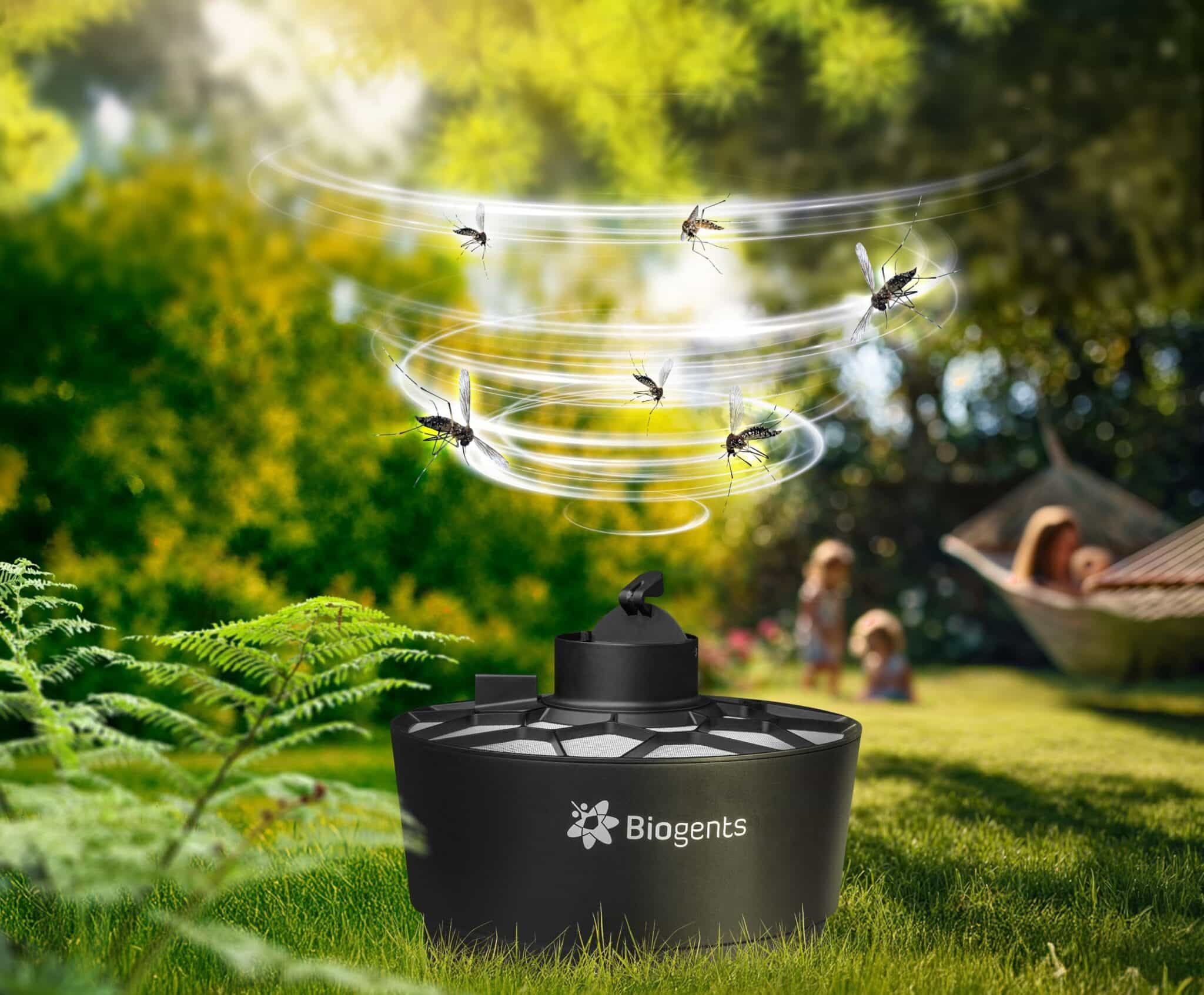 - Biogents AERO TRAP: pège extérieur qui imite l'odeur humaine (grâce à l'attractif Sweetscent) pour attirer et capturer les moustiques, en particulier le moustique tigre.
