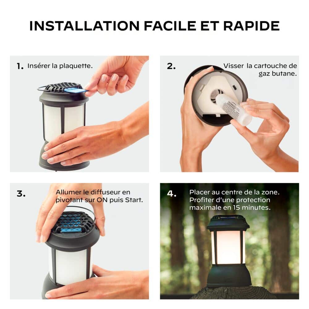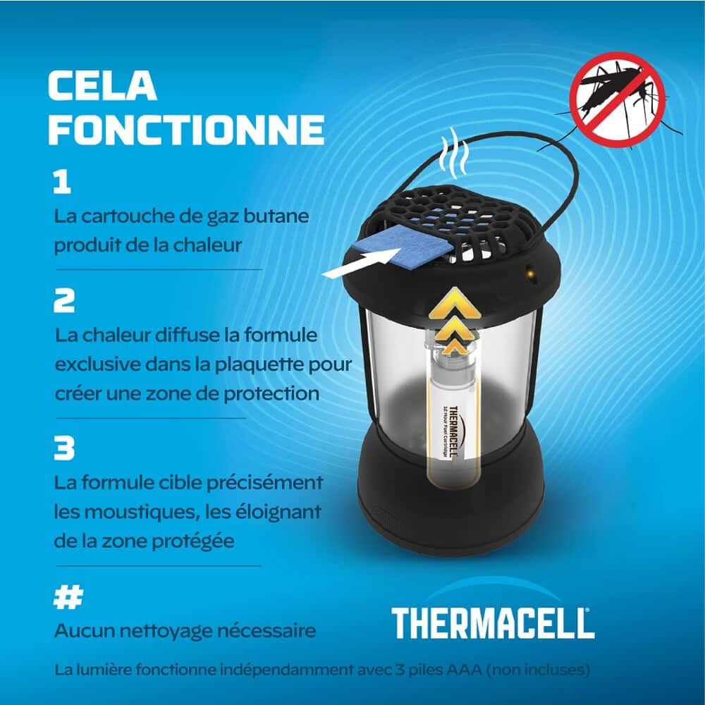 Esthétique et moderne, la lanterne Thermacell assure une protection totale des extérieurs de vie (terrasses, patio, piscine…) contre les principaux types de moustiques rapidement après sa mise en route. Il assure une protection sur une zone de 20m² environ et permet de profiter pleinement de ses extérieurs sans se soucier d’être piqué.