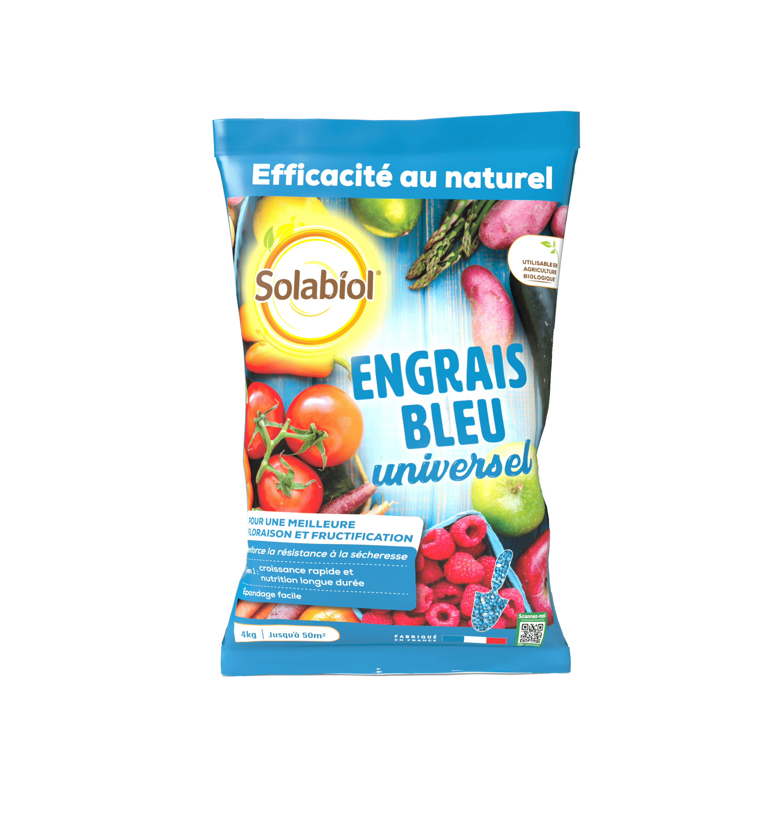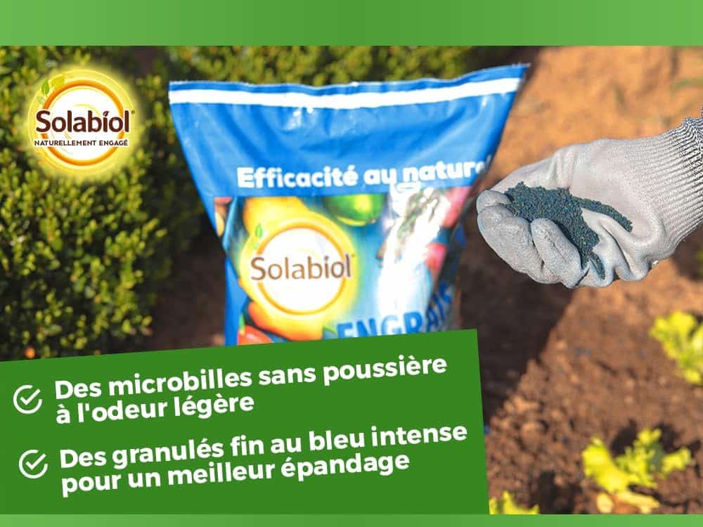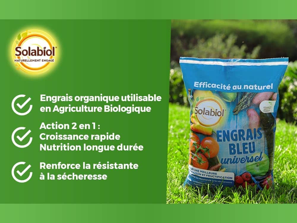 L’engrais bleu micro-granulés UAB Solabiol permet une fertilisation complète et prolongée des végétaux. Il favorise la fructification et la floraison et renforce la résistance à la sécheresse. Cet engrais qui convient à toutes sortes de fleurs, de fruits et de légumes.