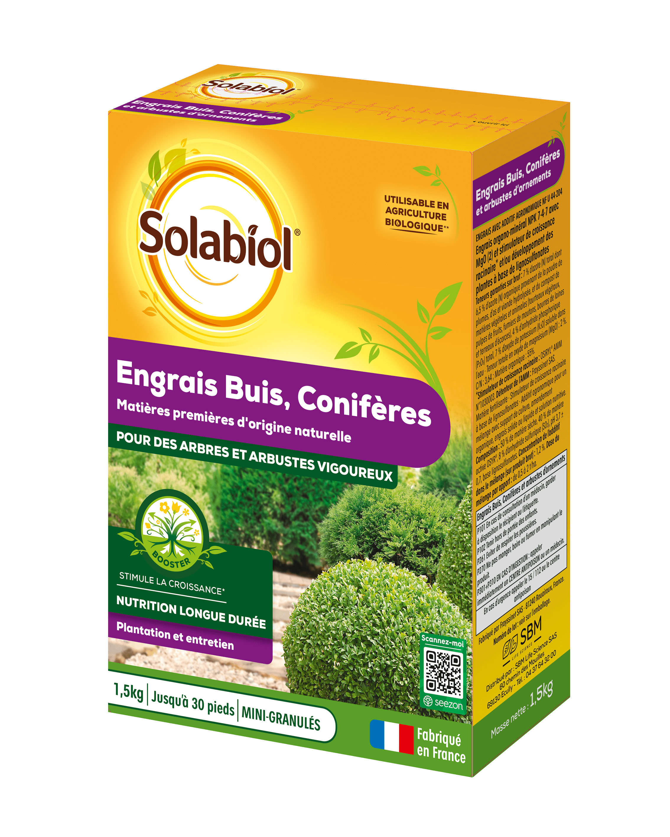 Apporte une fertilisation douce et régulière au sol pour une nutrition complète des arbres et arbustes d’ornement.