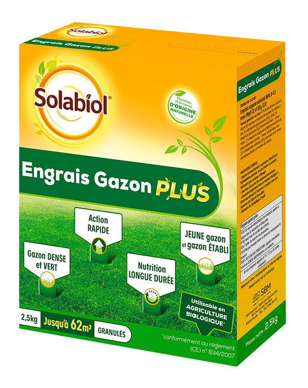 L’engrais Gazon Plus Solabiol permet un entretien facilité du gazon. Par sa formulation, il nourrit durablement le gazon et améliore le sol. Il devient donc plus vert, dense et résistant tout au long de la saison.