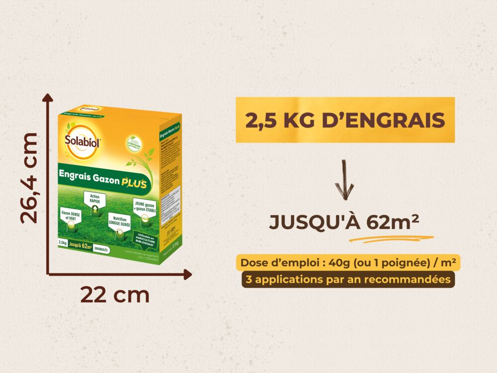 Le format 3,5 kg est donc particulièrement adapté si vous souhaitez anticiper les réapplications ou entretenir votre gazon sur toute l’année, tandis que le format 2,5 kg convient parfaitement aux petites surfaces ou à un usage plus ponctuel.