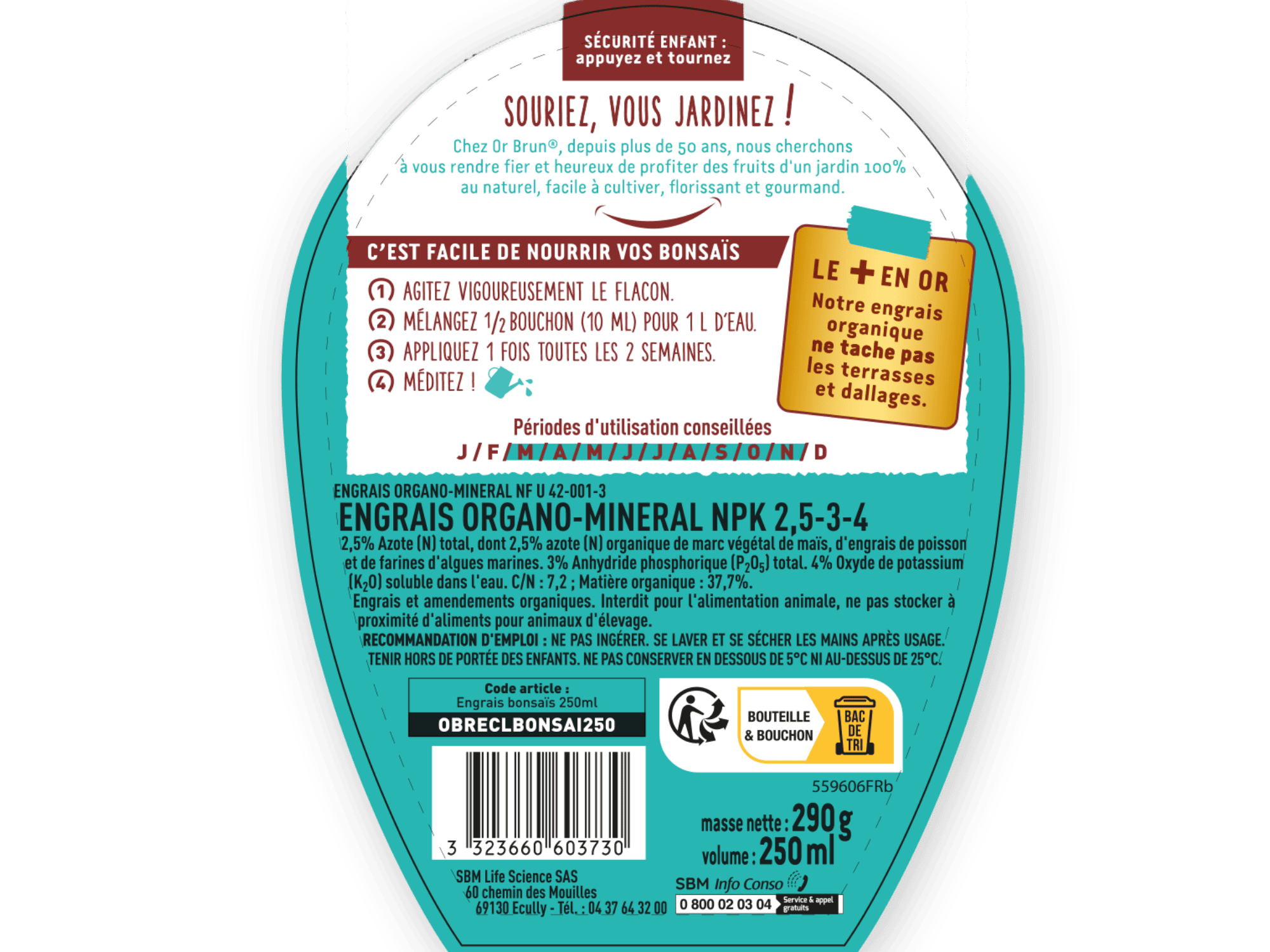 L’engrais liquide apporte tous les nutriments nécessaires pour nourrir votre bonsaï et garantir une bonne croissance.