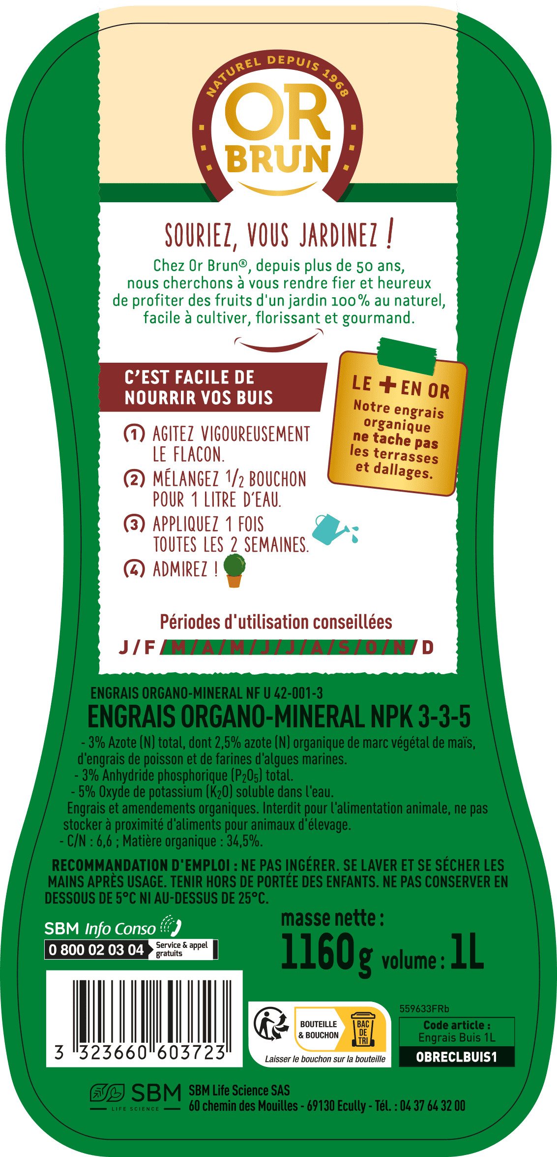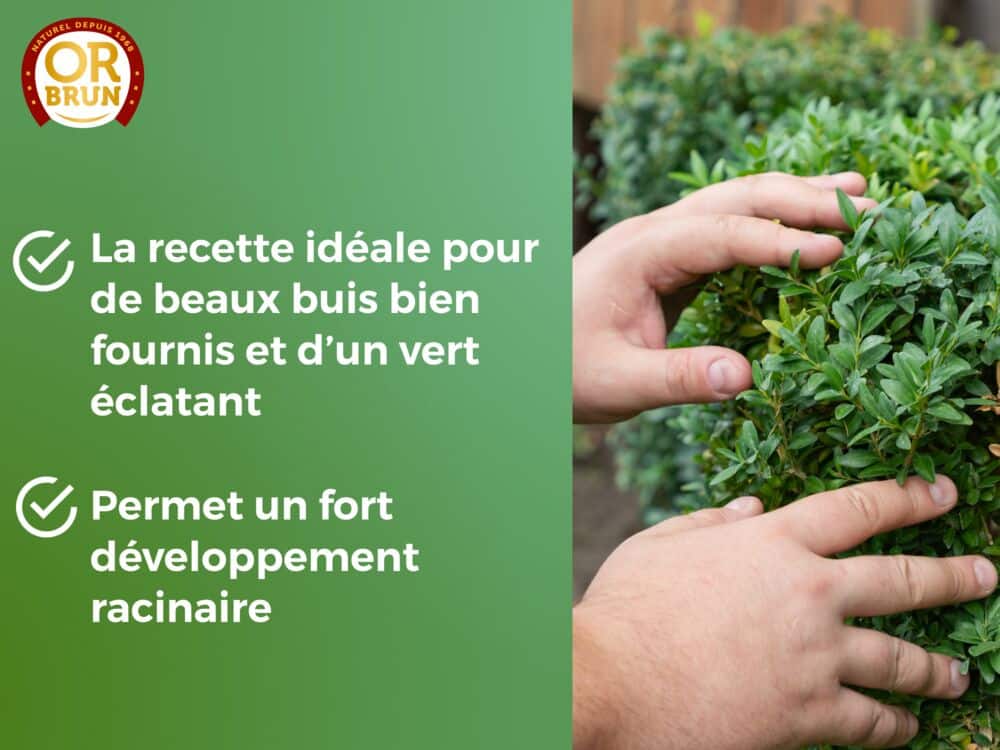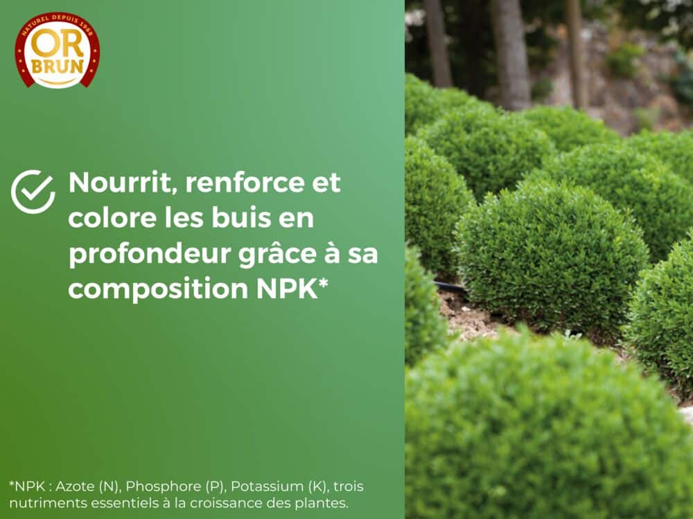 - Nourrit, renforce et colore les buis en profondeur grâce à sa composition NPK