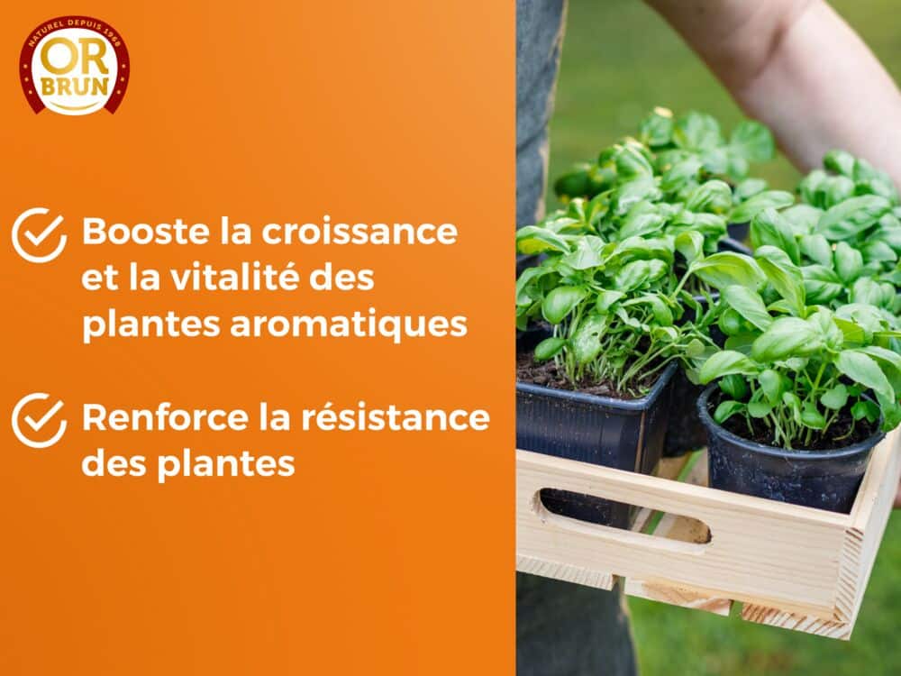 - Fortifie les pousses de plantes aromatiques et les nourrit en profondeur