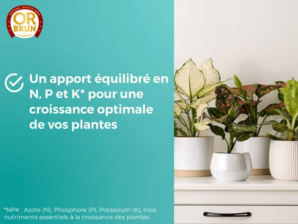 - Produit des plantes plus fortes et un feuillage plus dense grâce à sa concentration NPK