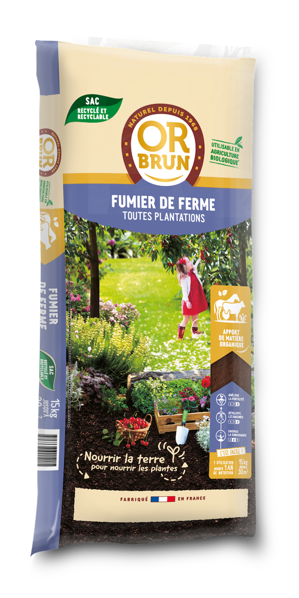 Un fumier fertilisant pour nourrir durablement toutes les plantations en pleine terre (arbres et arbustes, fleurs, fruits, légumes et gazon) en apportant tous les nutriments nécessaires à une bonne croissance et une récolte optimale.