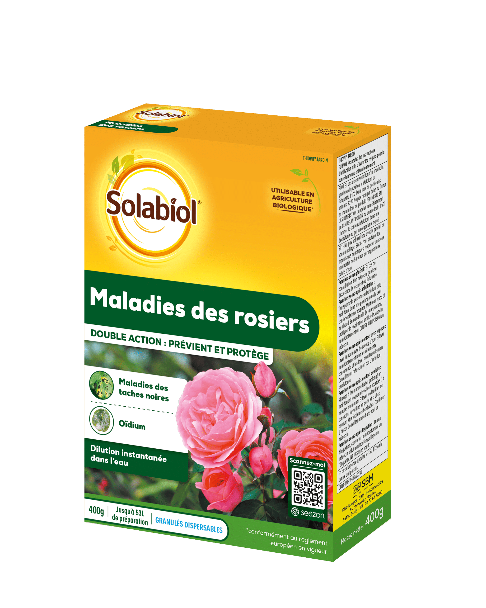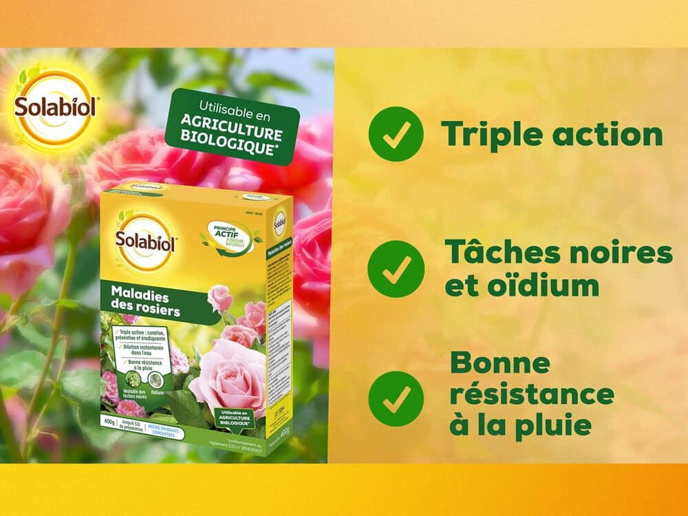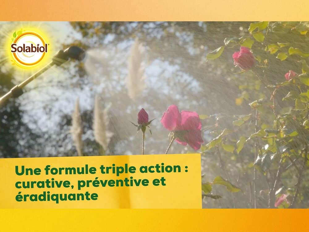 Traitement par contact et par vapeur contre oïdium et maladies des taches noires des rosiers.