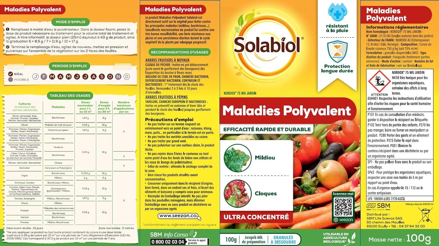 Traitement préventif agissant par contact contre les principales maladies des végétaux : mildiou, bactérioses, tavelures, taches brunes…