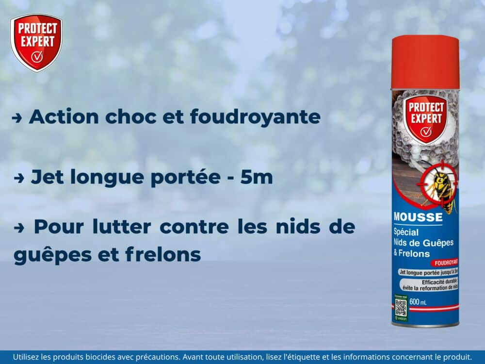La mousse enveloppante a été développée spécialement pour les nids de guêpes et frelons situés dans des endroits difficiles d’accès comme les sous-toits, les fentes des murs, etc.