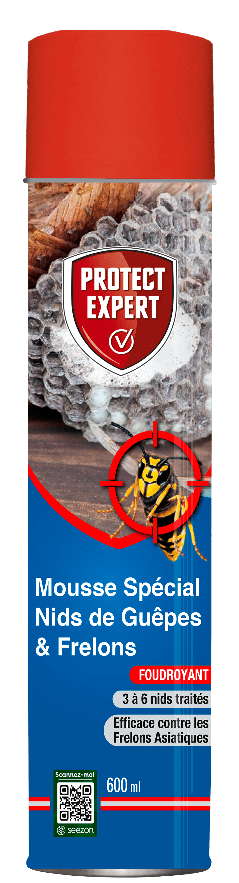La mousse enveloppante a été développée spécialement pour les nids de guêpes et frelons situés dans des endroits difficiles d’accès comme les sous-toits, les fentes des murs, etc..