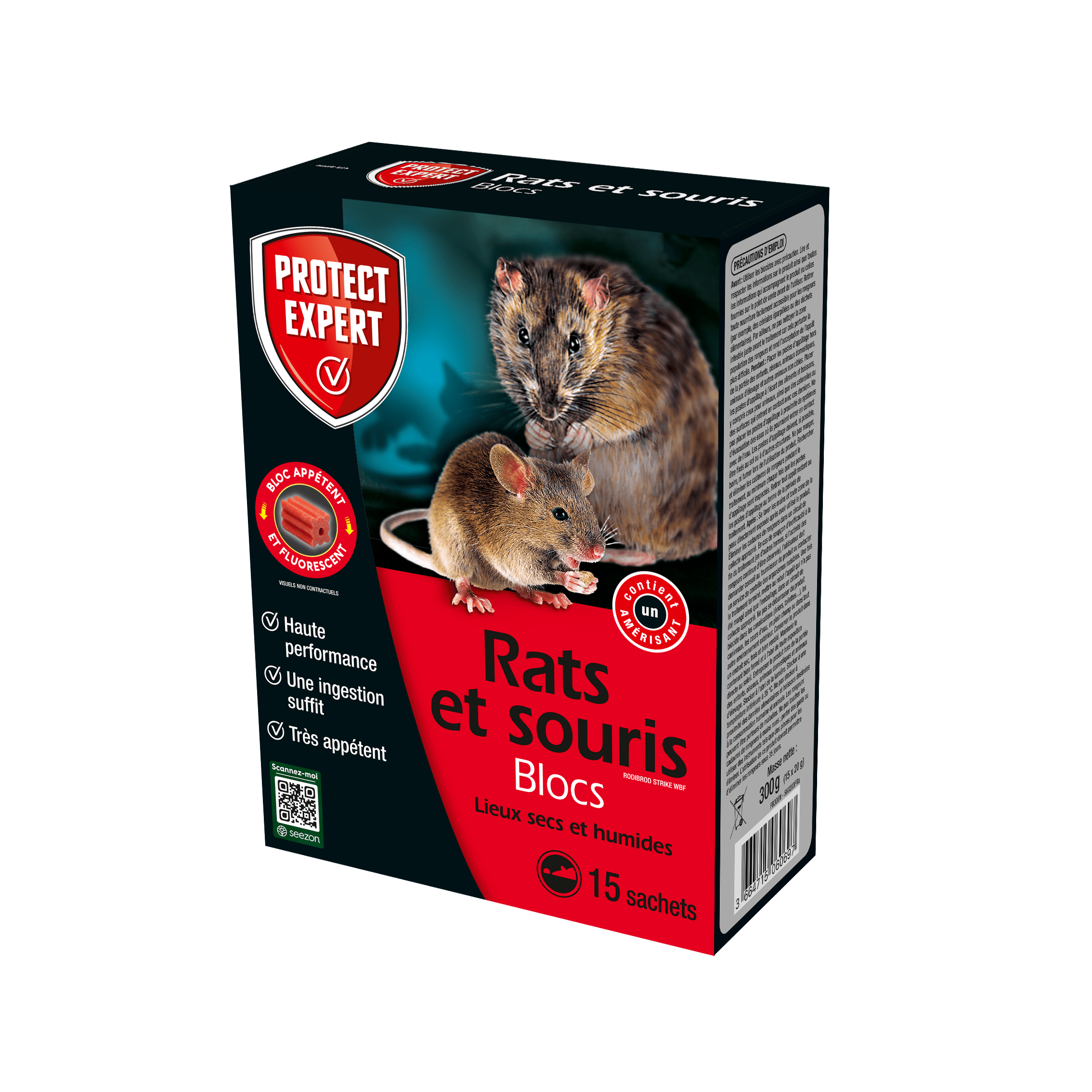 Le bloc PROTECT EXPERT est un rodenticide très appétent contre les rats et les souris. Il se présente sous la forme d'un bloc appât prêt à l'emploi particulièrement adapté à une utilisation dans des conditions humides. Efficace dès les premières ingestions, il est utilisé dans les lieux comme les caves, locaux d'élevage, basses-cours, entrepôts.