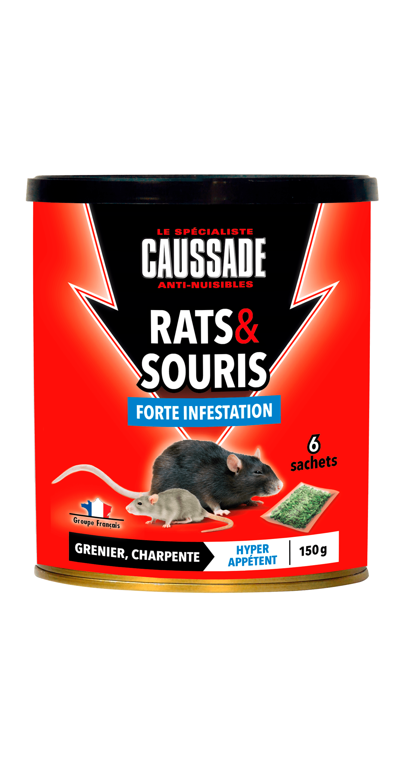 Les rongeurs ont envahi grenier, charpente, entrepôts et provoquent des dégâts, signes d’une forte infestation. La formule CAUSSADE exclusive à base de céréales est très appétente pour appâter et éliminer l’ensemble de la colonie.