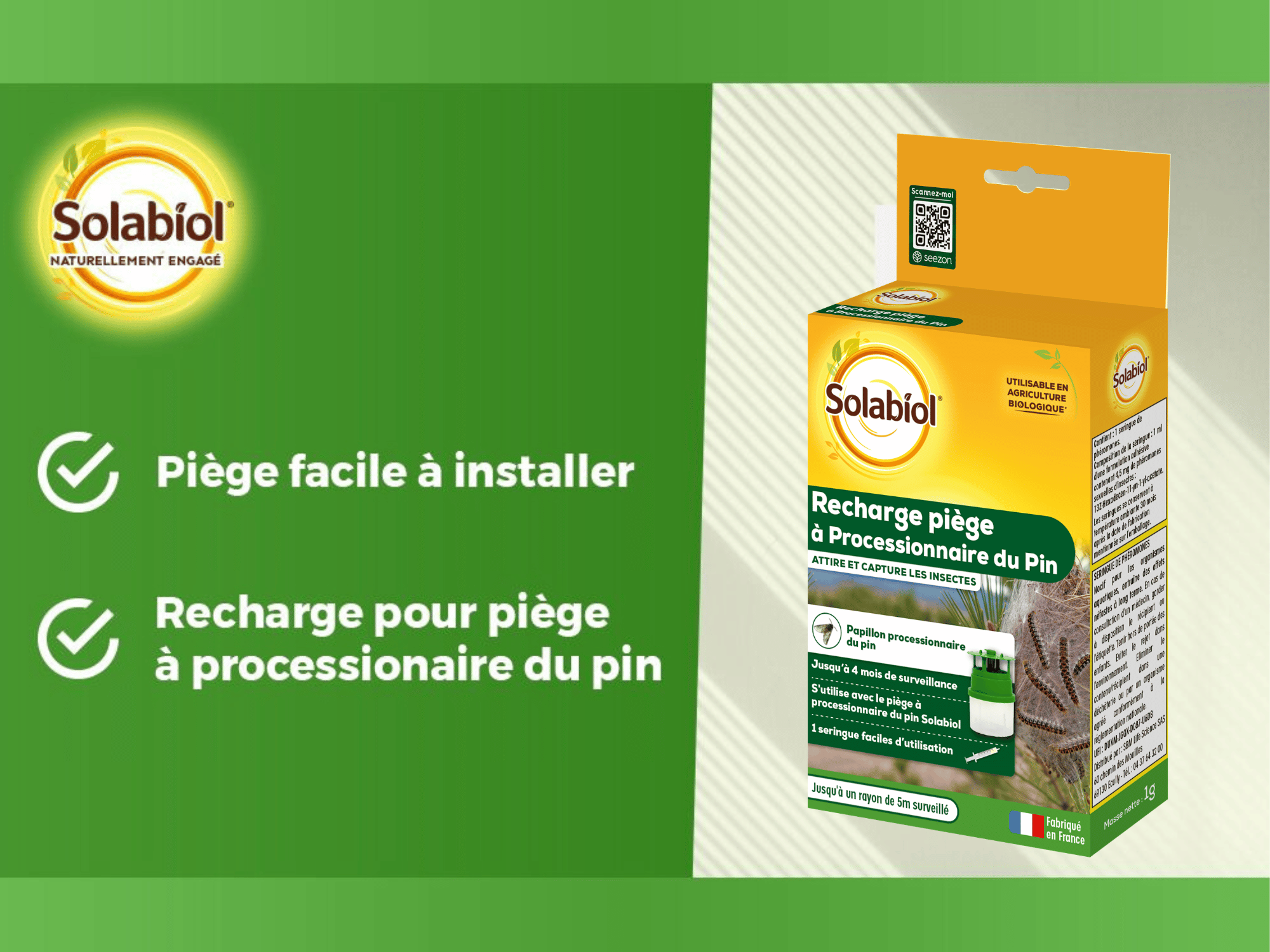 La recharge de phéromones est à utiliser avec le piège à processionaire du pin Solabiol.