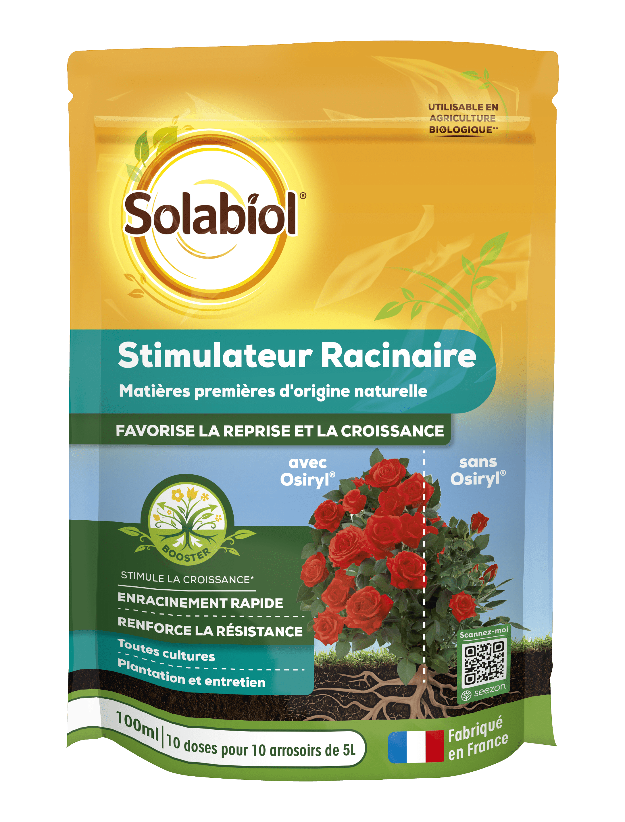 Active la croissance de la plante (feuilles, fleurs, fruits) et renforce sa résistance grâce au développement de son appareil racinaire.