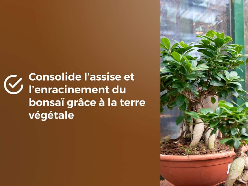 - Consolide l’assise et l’enracinement du bonsaï grâce à la terre végétale