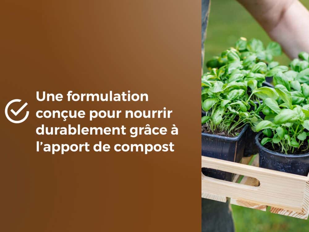 - Une formulation conçue pour nourrir durablement grâce à l’apport d’amendement